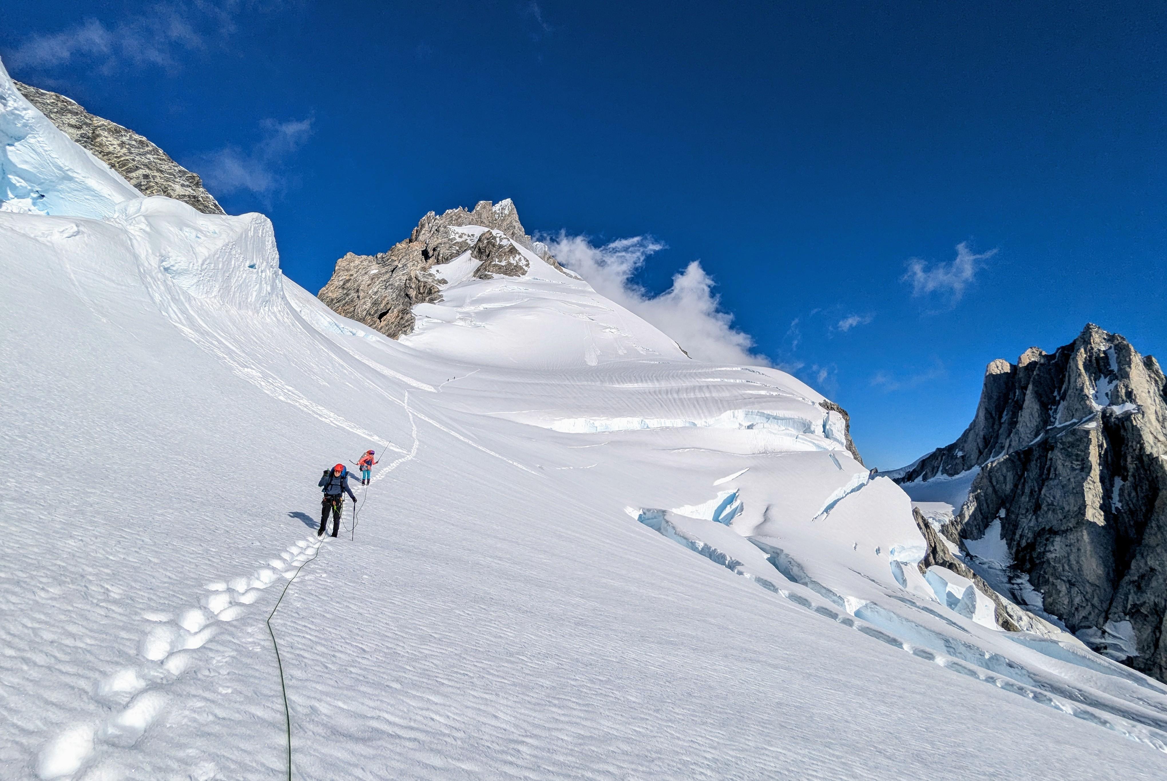 We were pretty lucky to have such a good weather window and favorable conditions. It wasn't without significant efforts though. We used all our tools and every imaginable techniques to overcome the various challenges on the route. Above all, we hugely benefited from a thorough fly by of the lower Bravo glacier to be able to pick the best possible route through the exposed crevasse maze.
