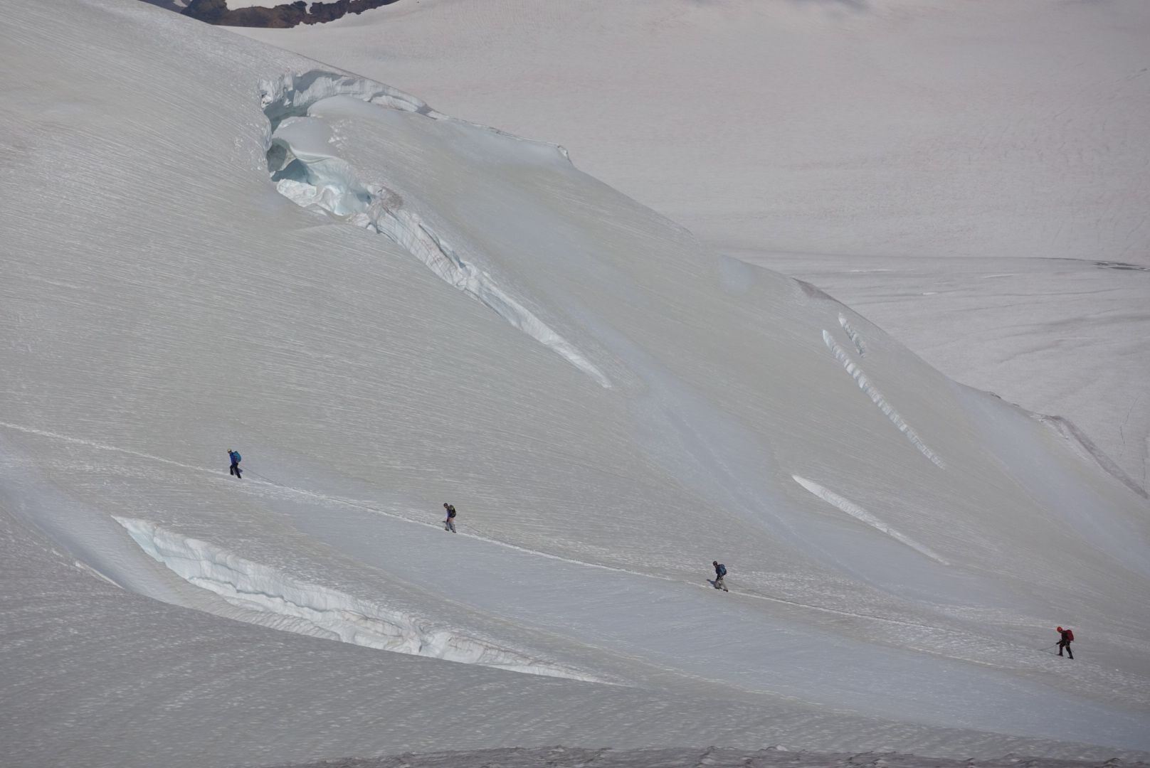 I'm attaching a few photos showing the glacier travel approaching Hallum Peak as well as the route from across the valley (from near the base of Magic Carpet Glacier).
