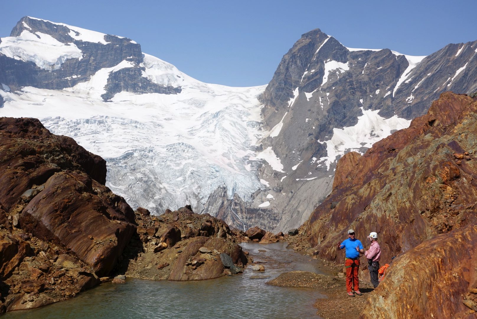 It was a wonderful week for weather and conditions -- hot (highs in the high 20s) and mostly clear, with generally really good glacier coverage and easy travel. The exception was on something called the "Riddle Glacier" on the approach to Hallum Glacier, which though spectacularly fractured still offered surprisingly straightforward passage all week, with a bit of caution required on the melting bridges and a couple of belays on the ever-increasing ice. Although the snow was melting fast this week, it didn't seem to be making passage more difficult -- if anything, the best ways through are becoming more obvious.