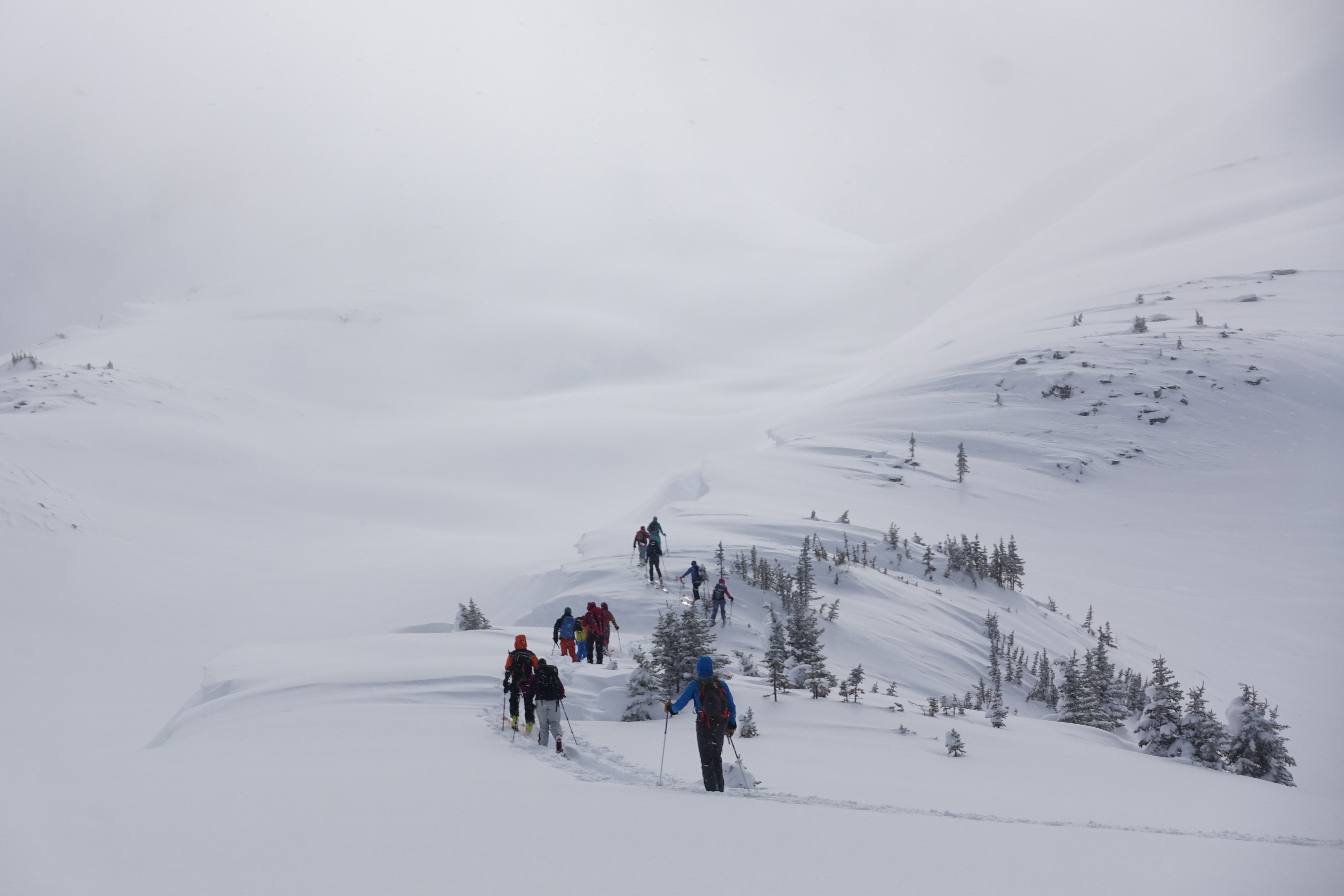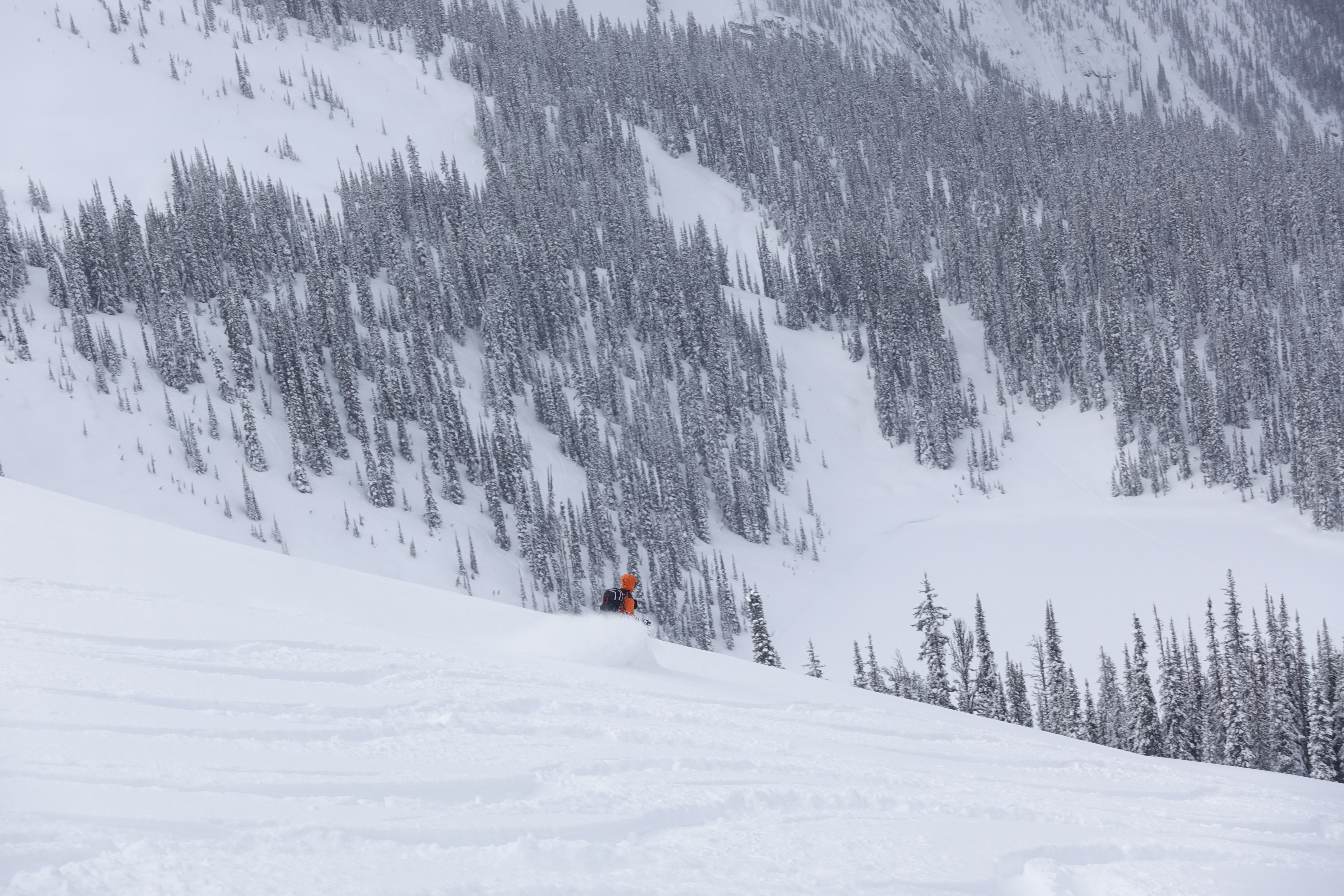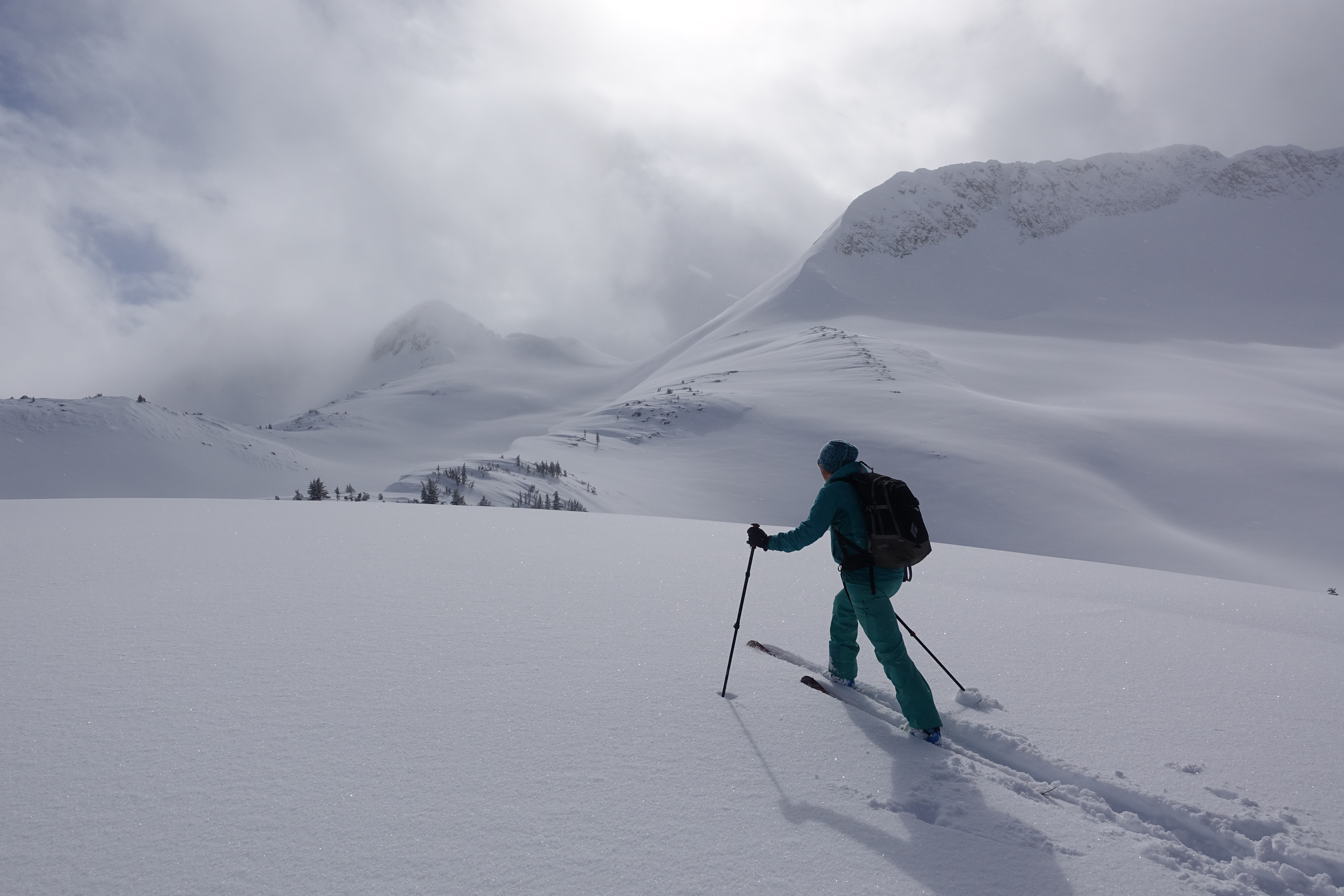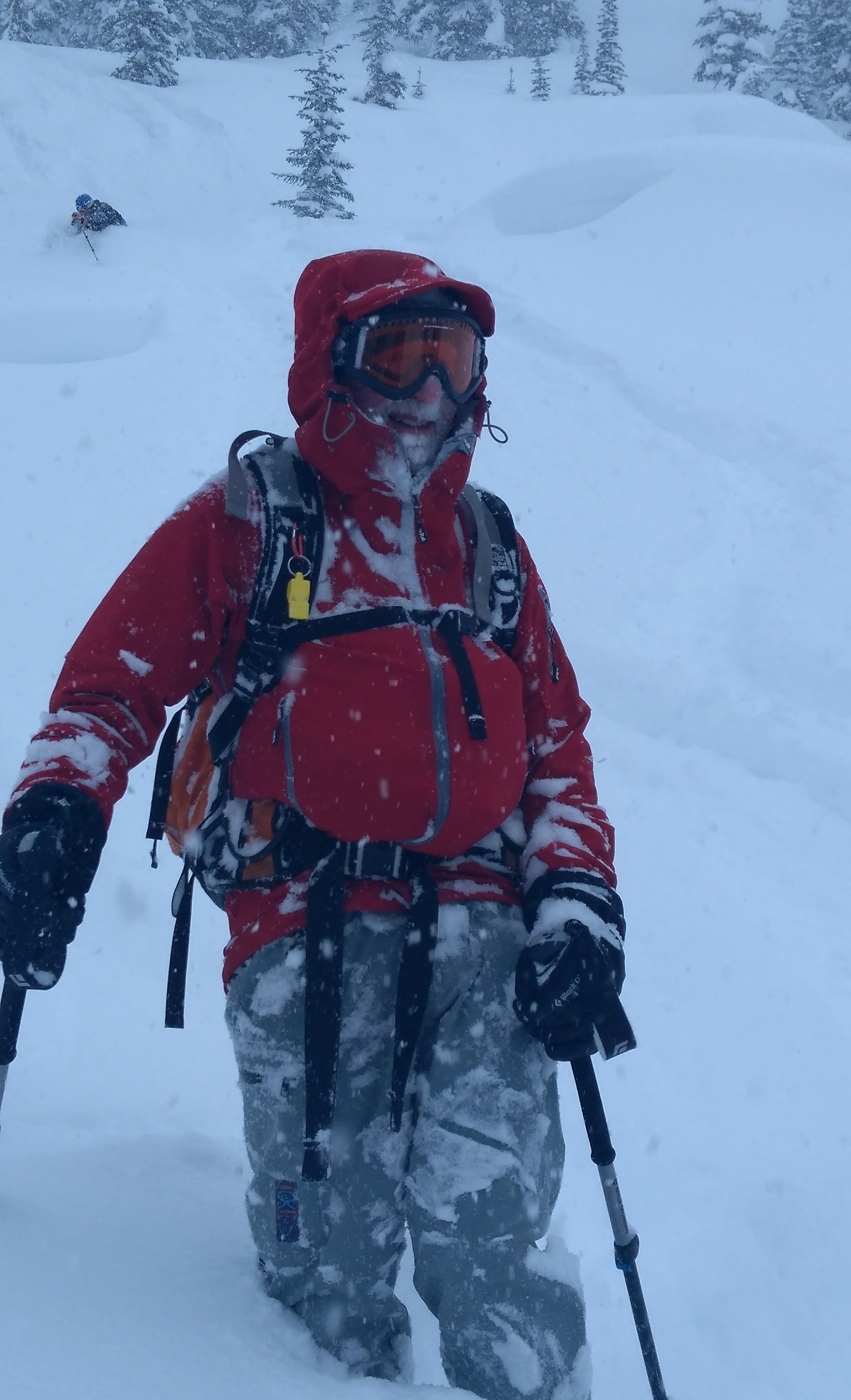 The skiing was excellent low-density pow on all aspects throughout the week. We skied from 2400 m down to 1400 m. With the more settled weather of the last couple of days hazard has been improving, down from High in the Alpine for the last half of the week to Moderate currently. The persistent weak layers of January are now buried 150-200 cm and not a concern right now. The main concerns in this area now are the suncrusts on steep solar aspects (the Feb 23 PWL) and storm/wind slabs.