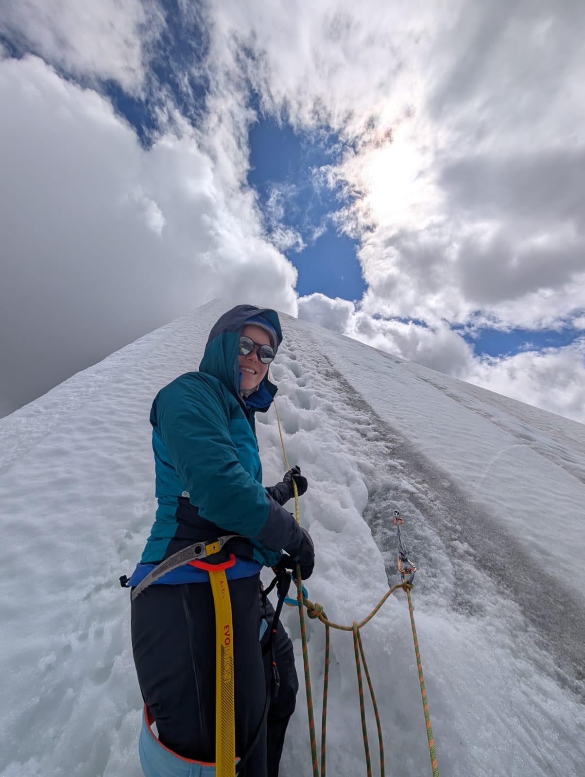 Mt Huber required ice screw anchors for the last 2 pitches, snow coverage on summit.